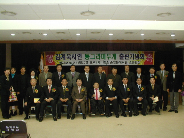 º»È¸¿Í Çù·Â´ÜüÀÎ ¹«¾È±ºÀå¾ÖÀÎÇùȸÀÇ ±è°è¿íȸÀå²²¼ Àå¾ÖÀÎÀÇ ¾Öȯ°ú Èñ¸ÁÀ» ±×¸° ½ÃÁý 'µ¿±×¶ó¹Ì µÎ°³'¸¦ ÃâÆÇÇÏ¿© ±× ±â³äȸ°¡ 06³â 11¿ù 30ÀÏ ¹«¾È½Â´Þ¹®È¿¹¼úȸ°ü¿¡¼ ÀÖ¾ú½À´Ï´Ù.